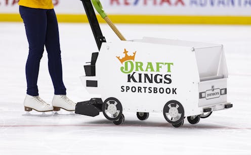 Amid all the silliness of a modern pro sports experience – the home team skating out of a giant saber-toothed tiger head, the mistletoe kiss cam, a small rock band playing seasonal hits between periods – there was a steady stream of advertising for DraftKings, a company known as a sportsbook that takes bets on athletic events and pays out winnings.