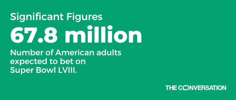A record 67.8 million American adults are expected to bet US$23.1 billion on Super Bowl LVIII, according to a new American Gaming Association survey. The estimated number of bettors has increased 35% from the previous Super Bowl, while the total amount being bet is estimated to have shot up from $16 billion in 2023.