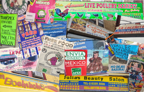I am a Ph.D. candidate in Hispanic linguistics at Temple University, and I conducted what’s called a linguistic landscapes study in these three neighborhoods from 2021 to 2023. I wandered through each neighborhood on foot several times each year, taking photographs of written signs in public spaces. By the end of my research, I had collected a total of 3,356 signs. These included business signage, posters and handwritten signs. My findings were published in the April 2024 issue of the peer-reviewed journal Languages.