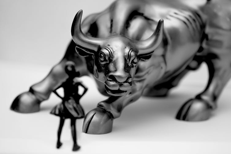 On the surface, the appearance of a statue that appears to directly challenge the bull is a striking symbol of empowerment.