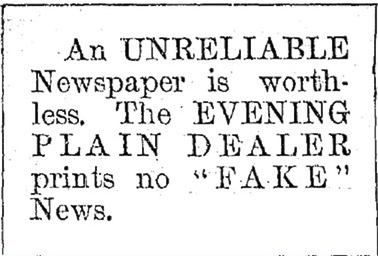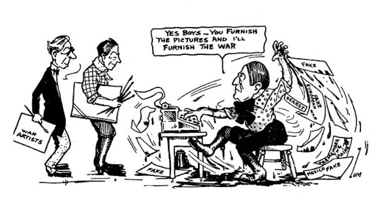But I also found that just prior to the Spanish-American War in 1898, readers started getting warned about “fake news.” At the time, the newspapers of media magnate William Randolph Hearst started publishing made-up interviews and stories about invented battles.