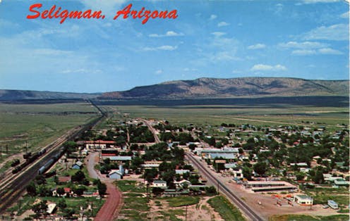 Salvation was delivered via Route 66. Like many other towns along Route 66, Seligman and Peach Springs built motels, diners and gas stations, many of which used elaborate props and neon signs to attract passersby.