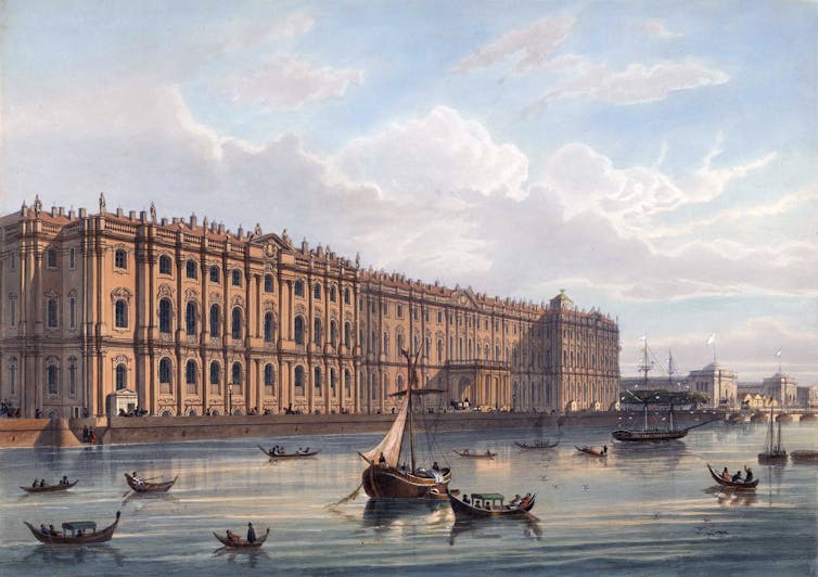 Standing in the heart of the Russian capital, with 60,000 square meters of floor space and 1,500 rooms, the Winter Palace was among the world’s grandest buildings. The Russian poet Vasilii Zhukovskii wrote that the palace was “the representation of all that is Russian, all that is ours, all that relates to the Fatherland.”