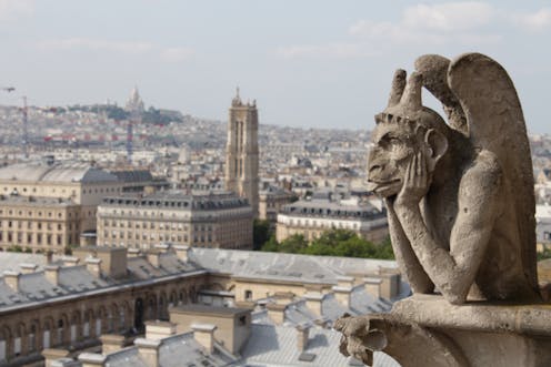 Viollet-le-Duc’s renovated cathedral – the version that we know today – is a product both of the French Middle Ages and of its architectural revival in the 19th century. Like Hugo, Viollet-le-Duc romantically conceived medieval architecture as a stable bulwark against his own uncertain times. He wanted to intensify what he saw as the building’s mystical power – its ability to speak to France’s past at a time when the forces of modernity were threatening to sweep its traces away.