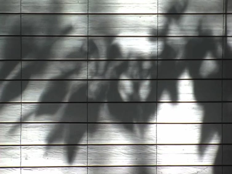 If you have a deck or balcony that receives direct sunlight, the wind-generated movements of foliage can be projected onto a translucent shade or blind to make them seem part of the interior.
