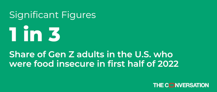 Prices for food consumed at home are currently jumping at over 12% a year. That’s the fastest pace since 1979. Our survey data only reflects some of these recent price gains, so it’s unclear yet how much this will affect food insecurity. But what is clear is that Gen Z Americans, like other vulnerable groups, need more support to ensure they can access an affordable diet.