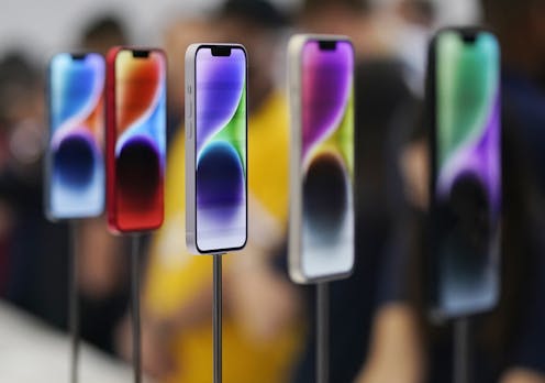 Instead, Apple released its latest iPhone models at the same prices as the last two models, or US$799 for the iPhone 14 and $999 for the pro version. Keeping prices constant during inflationary times means iPhones are getting relatively cheaper.