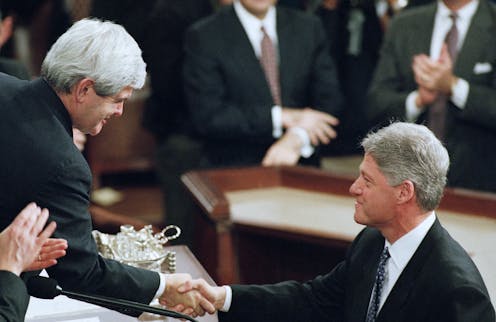 The higher taxes invited pushback from Republicans, who gained majorities in the House and Senate in 1995. Clinton wrangled continually with then-Republican Speaker Newt Gingrich, who forced a government shutdown that same year.