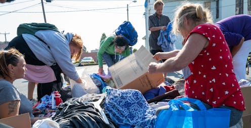 People in West Virginia look through donated clothes. Spencer Platt/Getty Images