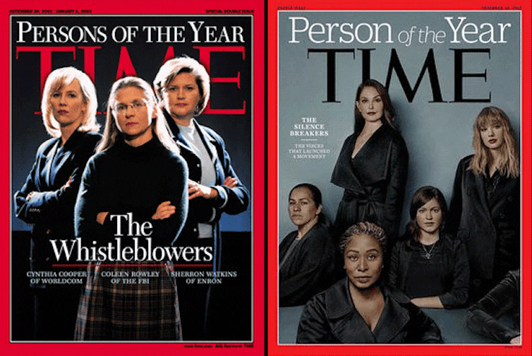 It was a combination of online and offline whistleblowing. A number of the women who disclosed information to the media against Harvey Weinstein and other prominent men did so in defiance of contracts they signed promising secrecy. The millions of others who posted on social media may have also theoretically risked breach of contract claims – although Title VII of the Civil Rights Act offers a form of whistleblower protection.