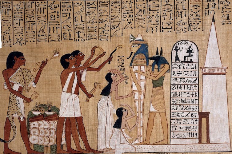 The Egyptians pioneered the first paper. Papyrus came from a 15-foot-tall (4.5 meter) plant of the same name that grew in marshlands along the Nile River. They cut the stalk into thin strips, pressed them together and dried them into the long rolls you can now see preserved in museums. They wrote in ink, which didn’t smudge or blur on this new paper. Papyrus made it easy to carry their writing with them in rolled up scrolls – much easier than carting around heavy clay tablets and rocks.