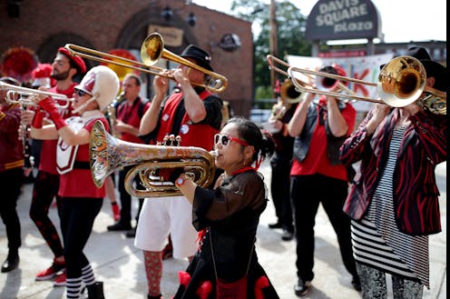 In the 19th century, brass bands flourished all over the U.S. and Europe. In the U.S. South, street bands emerged from benevolent societies – social organizations that helped free and enslaved Black Americans cope with financial hardships. These groups eventually morphed into “social aid and pleasure clubs,” the forces behind New Orleans’ famous parades.
