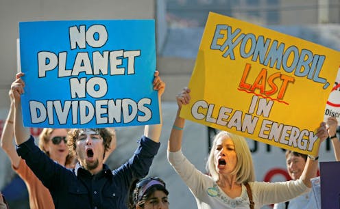 Protesters have sought for years to force Exxon Mobil to disclose the risks it faces due to climate change and to do more to minimize them. AP Photo/LM Otero