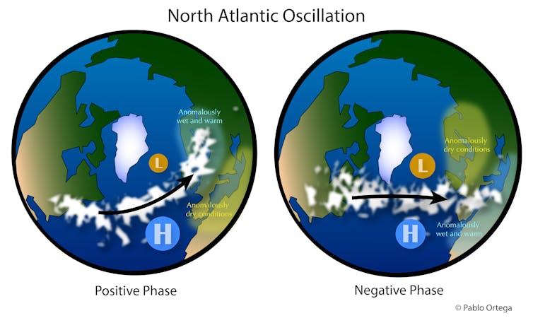 But this mechanism could not explain a jump of this magnitude in sea levels south of the Cape. Another previous study offered an additional clue. It proposed that the North Atlantic Oscillation (NAO), a seesaw pattern in air pressure over different regions of the North Atlantic Ocean, could explain the shift in the position of short-term variations in sea level rise.