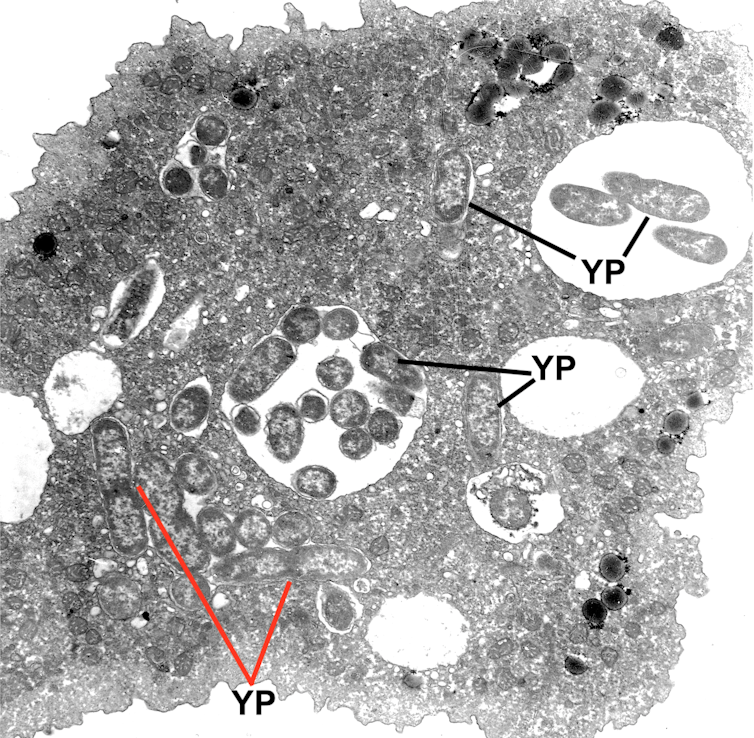 Living in the soil, alongside amoebae, required these bacteria to evolve ways to avoid being eaten. Given this evolutionary history, our research team hypothesized that when plague evolved from Y. pseudotuberculosis approximately 10,000 to 40,000 years ago, it may have retained the ability to survive inside amoebae.