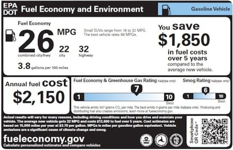 To get a sense of what that means, if Americans kept driving exactly as much as they do today but operated pre-CAFE gas guzzlers, the average U.S. household would spend nearly US$2,000 more on gasoline each year. And annual U.S. carbon dioxide emissions would jump by 1 billion tons. Economists debate how much damage these emissions cause, but conventional estimates peg the cost at $37 billion per year.