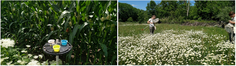 I am part of a team at Michigan State University, funded by the U.S. Department of Agriculture’s National Institute of Food and Agriculture, that is working to fill in some of knowledge gaps about bees. Michigan has 465 documented bee species, each with unique life history traits It also has a diverse agricultural sector, ranging from specialty crops like apples, blueberries and tart cherries to large-scale commodity crops like corn and soybean. And Michigan habitats range from highly urbanized to pristine wilderness. This diversity helps us ask questions about how different landscapes affect the local bee community.