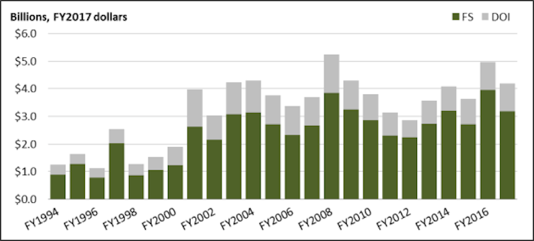 Spiraling wildfire fighting costs are largely beyond the Forest Service's control