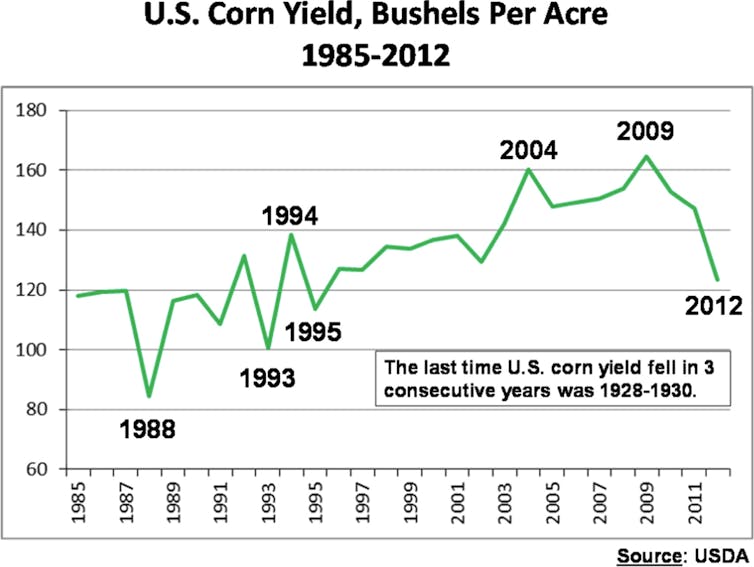 For instance, a 2012 heat wave and drought prompted major losses in corn harvests in the United States. Producers in the Southern Hemisphere adjusted to the shortfall, which served to moderate price increases in the United States. This was only possible because of international trade.