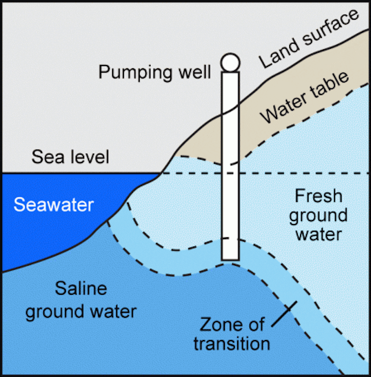 As sea levels rise, low-lying coastal areas are increasingly being inundated with saltwater, gradually contaminating the soil. These salts can be dissipated by rainfall, but climate change is also increasing the frequency and severity of extreme weather events, including droughts and heat waves. This leads to more intensive use of groundwater for drinking and irrigation, which further depletes the water table and allows even more salt to leach into soil.