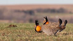 Because they tend to graze intensively on recently burned zones and leave other areas relatively untouched, bison create a diverse mosaic of habitats. They also like to move, spreading their impacts over large areas. The variety they produce is key to the survival of imperiled species such as the greater prairie chicken (Tympanuchus cupido) that prefer to use different patches for different behaviors, such as mating and nesting.