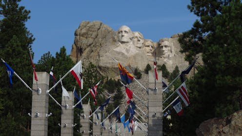 National memorials can summon more than one kind of patriotism. Take Mount Rushmore, which was designed explicitly to evoke national pride. Tourists walk the Avenue of Flags, marvel at the labor required to carve four U.S. presidents’ faces out of granite and applaud when rangers invite military veterans onstage during visitor programs. Patriotism at Rushmore centers on labor, progress and the “great men” that the site describes as founding, expanding and defending the U.S.