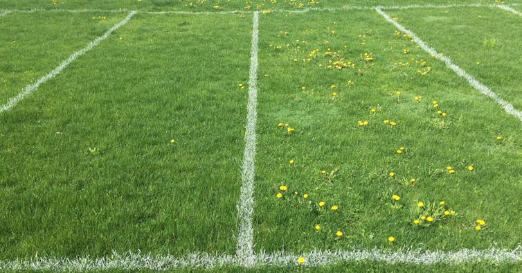Controlling weeds on playing fields, parks and lawns without herbicides
