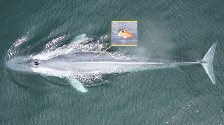 Like a Fitbit that uses movement to record behavior, our tags measured how often whales fed below the ocean’s surface, how deep they dove and how long they remained at depth. We wanted to determine each species’ energetic efficiency – the total amount of energy that it gained from foraging, relative to the energy it expended in finding and consuming prey.