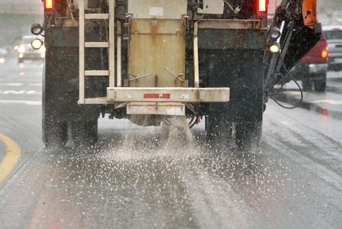 Road salts also damage the surfaces we drive on. They contain chlorine ions – atoms with a negative charge – that alter the chemistry of water and make it more corrosive when it comes in contact with materials like concrete and steel.