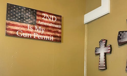 I was even more taken aback by home decor items announcing that the “2nd Amendment is my gun permit,” along with thermoses challenging government authorities to “come and take it” – “it” being a gun – and coffee mugs that listed gun calibers (.22, .380, 9 mm, .40, .45) and proclaiming, “All faster than dialing 911.”