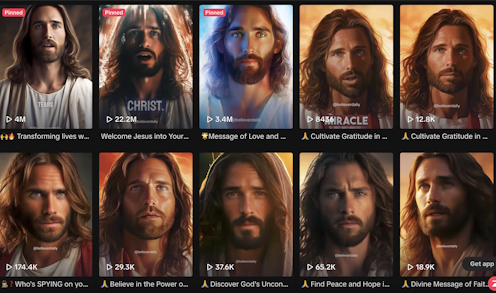 The TikTok profile Daily Believer (@believerdaily) has 70 videos with computer-generated Jesuses looking directly at the viewer, beseeching them to stop scrolling and watch the next minute’s worth of content.