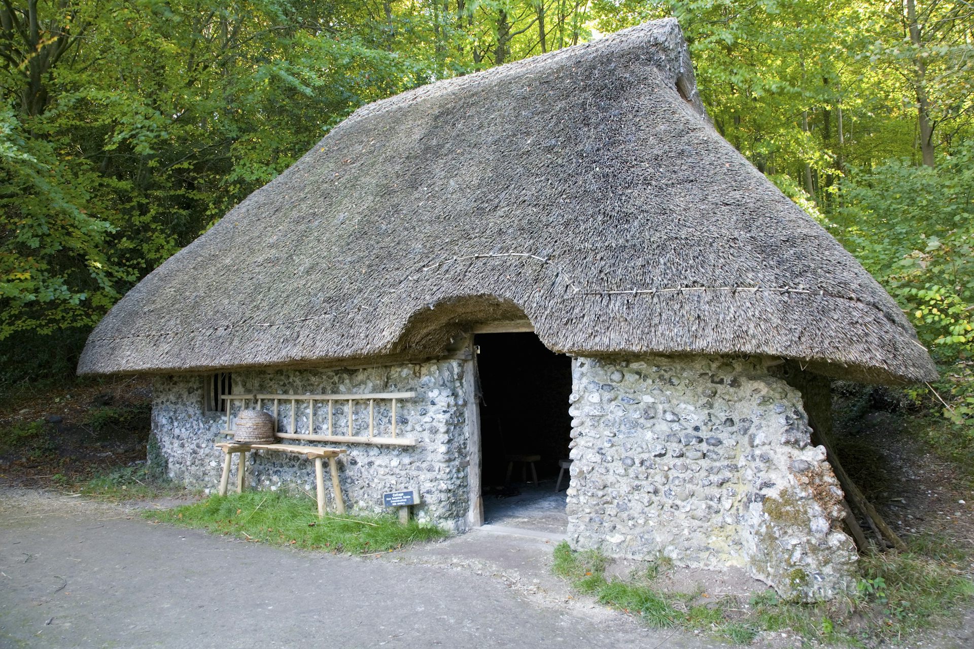 By today’s standards, a peasant’s house was small – in England, the average was around 700 square feet (65 square meters). Houses might be made of turf, wood, stone or “waddle-and-daub,” a construction very similar to lathe and plaster, with beamed roofs covered in straw. Houses had front doors, and some had back doors. Windows were covered with shutters and, rarely, glass. Aside from the fireplace, only the Sun, Moon or an oil lamp or candle provided light.