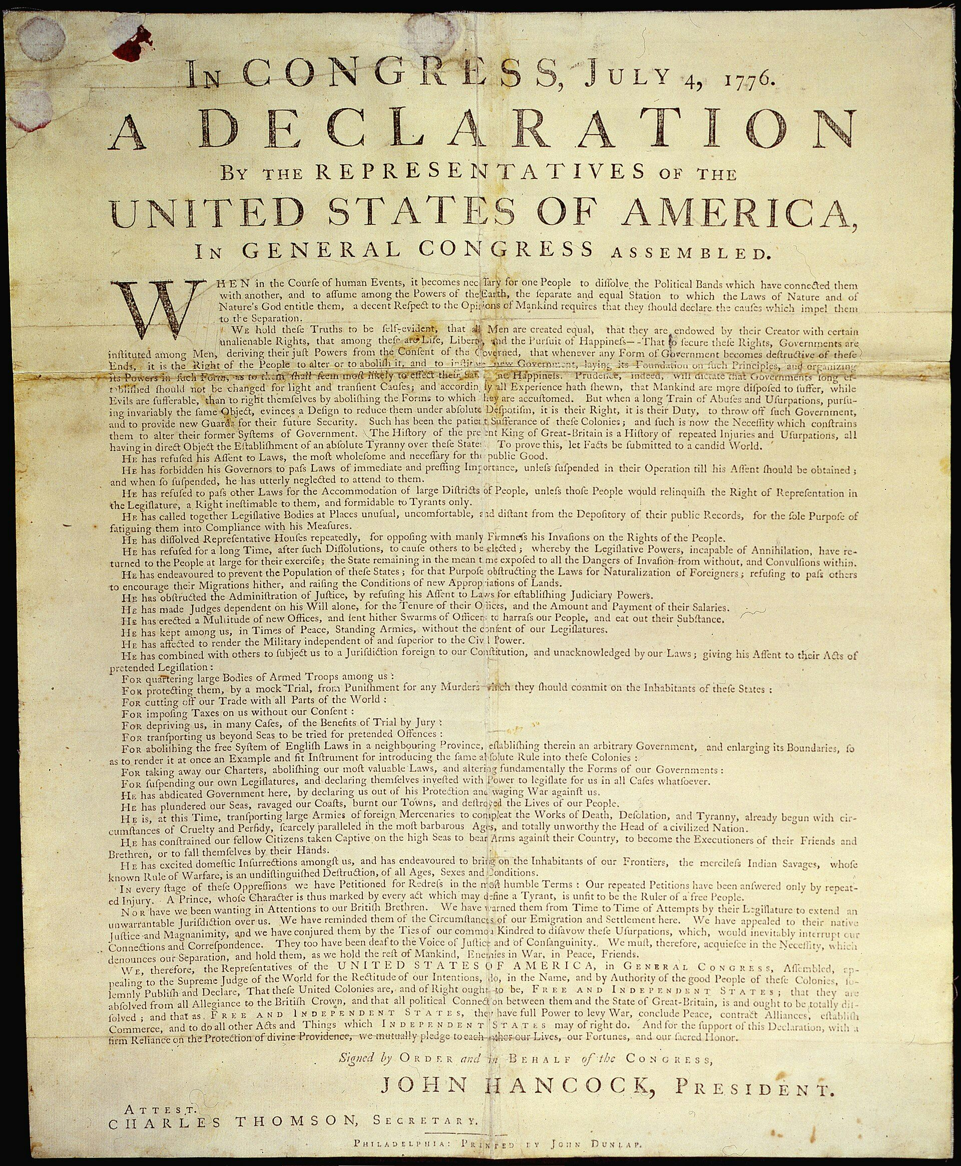 In its opening paragraph, Jefferson proposed that “the Laws of Nature and of Nature’s God” grant humans equal status and entitle Americans to dissolve “the political bands” with Britain. As historians have shown, Franklin added a phrase to suggest that those rights had been “endowed by their Creator.”
