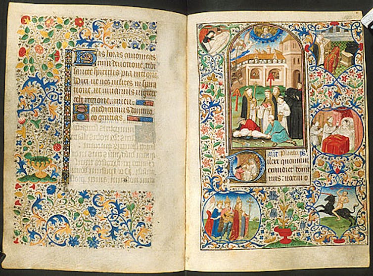 Families offered commemorative prayers to their ancestors, whose names were written in “Books of Hours,” prayer books that guided daily devotion at home. These books included a prayer cycle known as the “Office of the Dead,” which family members could perform to limit the suffering of loved ones after death.