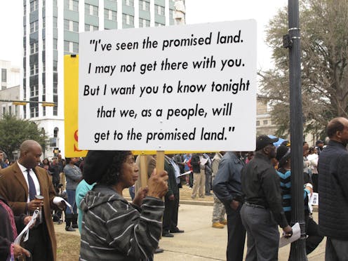 King compared the civil rights movement with the abolitionist movement, the populist movement of farmers and laborers in the late 19th century, and even to the American Revolution itself. The American ideal “all men are created equal” constituted what King called a “promissory note.” In each case, ordinary citizens demanded that that promise be honored. And through their actions, the nation was made more free and more just.