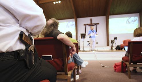 It also resonates with specific features of American religious life today. These include public debates among pastors over the appropriateness of concealed carry in the pulpit and of “open-carry celebrations” at church – not to mention the NRA’s contention that only “a good guy with a gun” can stop a bad guy with one.