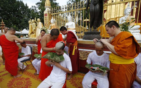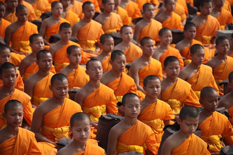 Monks in Southeast Asia, with their saffron robes and shaven heads, are iconic. They can be seen on the roadside with alms bowls, accepting handfuls of rice from villagers in early morning processions, or gathered in the evenings chanting Pali scriptures in the Buddhist temples that lie at the heart of most Thai villages. In my own research, I spent hours talking with monks – from abbots of major temples to those who had been ordained for a short period.