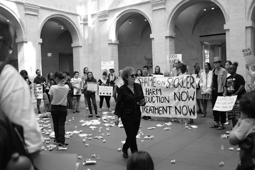 These protesters aim to pressure the Sackler family, which amassed a fortune after founding Purdue Pharma – the drugmaker that launched the opioid industry.