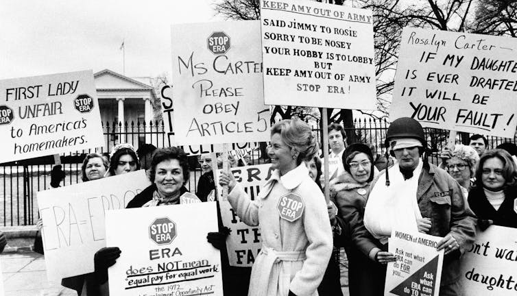 Then Schlafly mobilized hundreds of thousands of women against the amendment. They argued that it would make women subject to the military draft and that it would eliminate laws designed to protect women in the workplace and in divorce proceedings. They also raised the possibility of consequences that seemed alarming at the time but are familiar today, including same-sex marriage and gender-neutral public bathrooms.
