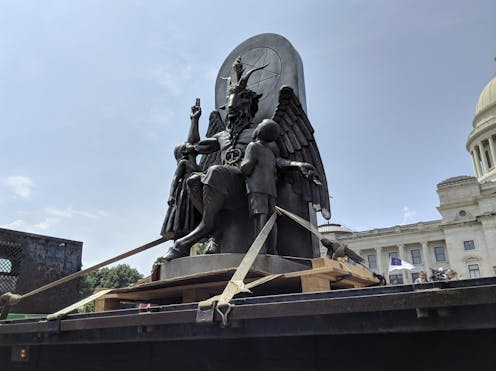 After Oklahoma installed a monument of the Ten Commandments at its State Capitol in 2012, the group demanded that their statue of a satanic deity, Baphomet, a winged-goat-like creature, be installed next to it.