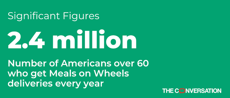 Services like this nonprofit meal delivery program, for which eligibility begins at age 60, are becoming more important than ever before. About 5.3 million people 60 and up, 7.3% of all Americans in that age group, experienced food insecurity in 2018 – meaning that their households couldn’t acquire adequate food because they lacked enough money and other resources.