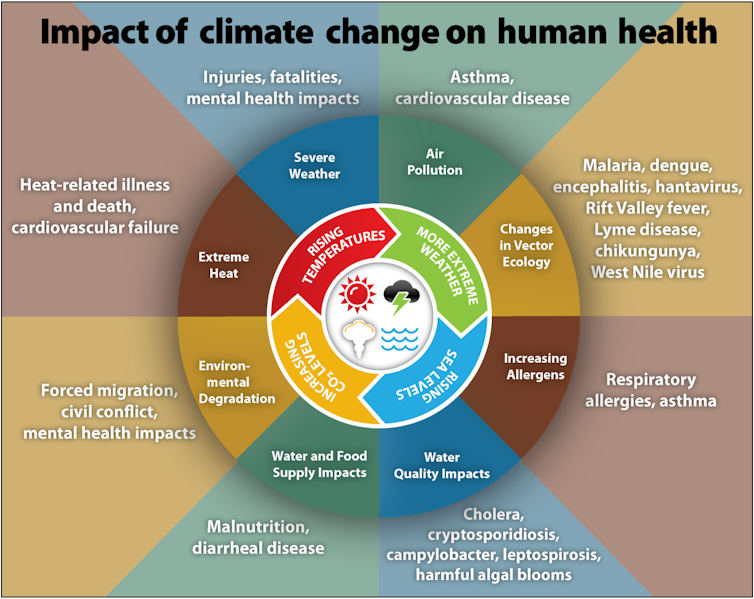 The human population has doubled in 48 years, and worsening climate change has left the world facing serious health risks, from infectious diseases to hunger and heat stress.