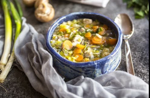 As a registered dietitian and professor of dietetics and nutrition, I’m well aware of the appeal of chicken soup: the warmth of the broth and the rich, savory flavors of the chicken, vegetables and noodles. What gives the soup that distinctive taste is “umami” – the fifth category of taste sensations, along with sweet, salty, sour and bitter. It is often described as having a “meaty” taste.