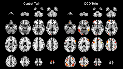 We have also begun a pilot study with a pair of identical twins. One has OCD and the other does not. We found brain abnormalities in the affected twin, but not in the unaffected twin. Further study is clearly warranted, but the results fit the pattern we have found in larger studies of children with OCD before and after treatment as compared to children without OCD.