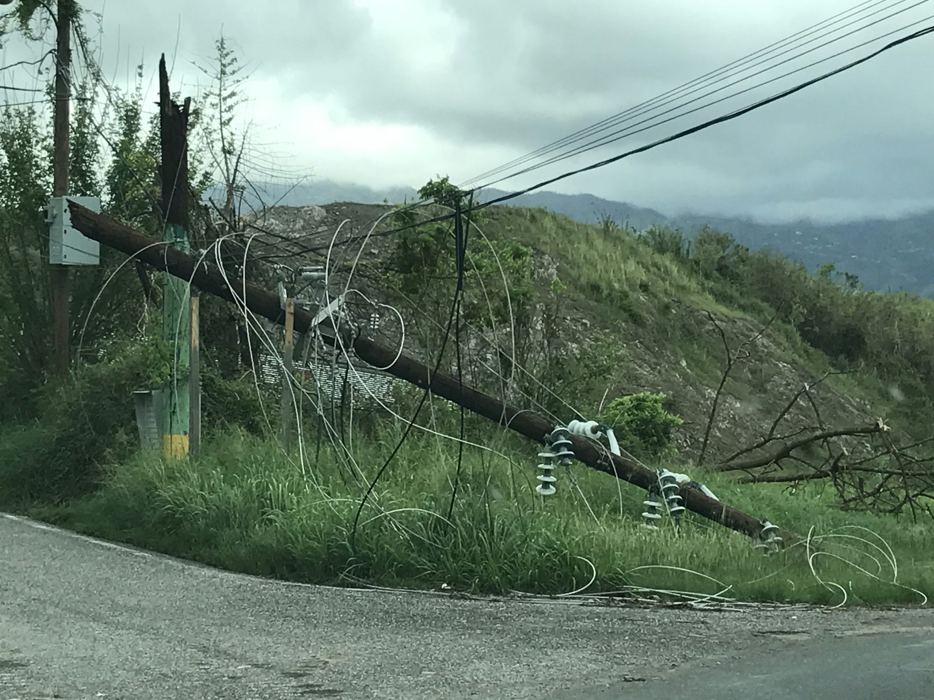 Driving around San Juan was a lot like being at the airport. Some areas were running on generators and had strong 4G mobile phone signals. Other areas were abandoned, with significantly damaged buildings and downed power lines. Outside the city, trees were barren and rivers engorged.