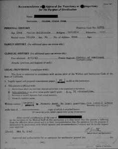 Under California’s eugenic law, first passed in 1909, anyone committed to a state institution could be sterilized. Many of those committed were sent by a court order. Others were committed by family members who wouldn’t or couldn’t care for them. Once a patient was admitted, medical superintendents held the legal power to recommend and authorize the operation.