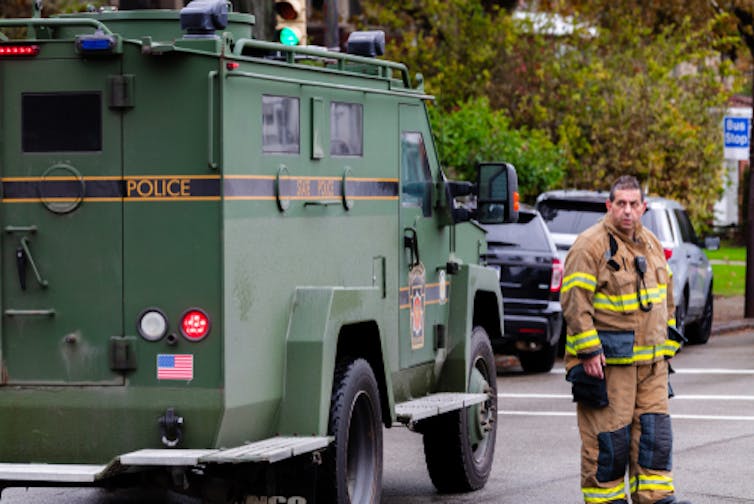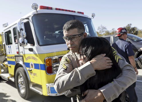 Another group whose trauma is usually overlooked is the first responders. When we all run away, the police, the firefighters, and the paramedics rush into the danger zone, and frequently face uncertainty, threats to themselves, their colleagues, and others, as well as terrible bloody scenes of post shooting. This exposure happens to them too frequently. PTSD has been reported in up to 20 percent of first responders to man-made mass violence.