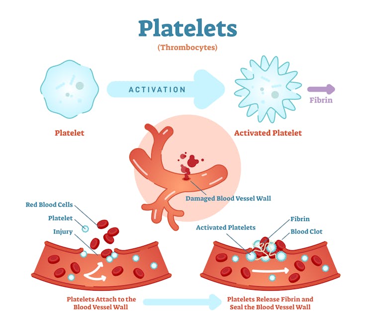 Platelets are the component of blood that springs into action when you get a paper cut or scrape your knee. The signals governing the recognition of a wound, and how to address healing, are quite complicated. However, under normal physiological conditions, these signals mediate a process called platelet activation, which results in healing the wound by closing broken blood vessels.