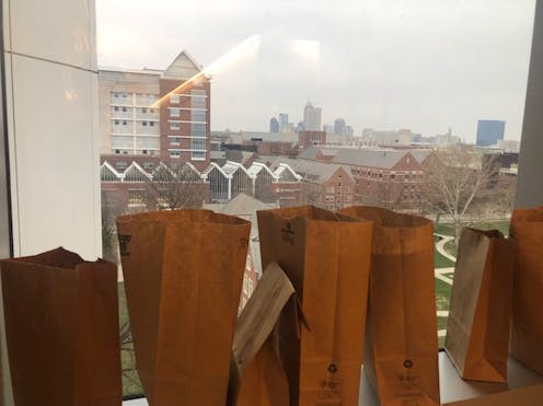 Brown paper bags line the windowsill of the COVID-19 intensive care unit at Eskenazi Hospital in downtown Indianapolis. The bags are filled with the N95 masks we’re reusing, labeled with the handwritten names of my staff: Patrick, Angela, Brittany. They are mothers, fathers, brothers and sisters.