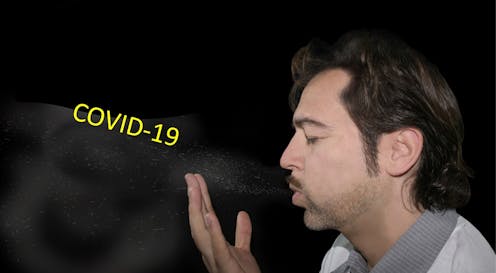 The other manner of spread is by asymptomatic infected people simply breathing, talking, yelling or singing. These activities aerosolize virus, creating airborne virus particles – also called droplet nuclei – that are so tiny they can float around in the air for three hours. Coughing and sneezing produce larger water and virus-borne droplets, as well as producing aerosolized virus.